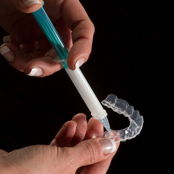After taking an impression, we design custom trays for your upper and lower dental arches. You fill the trays with a special prescription-grade whitening gel using a small syringe, then press them into position around your teeth. The trays are tailored to your smile, allowing the whitening gel to target the entire tooth surface without spreading to the gums. The system whitens over the course of a few weeks, breaking down stains to reveal a radiant smile.